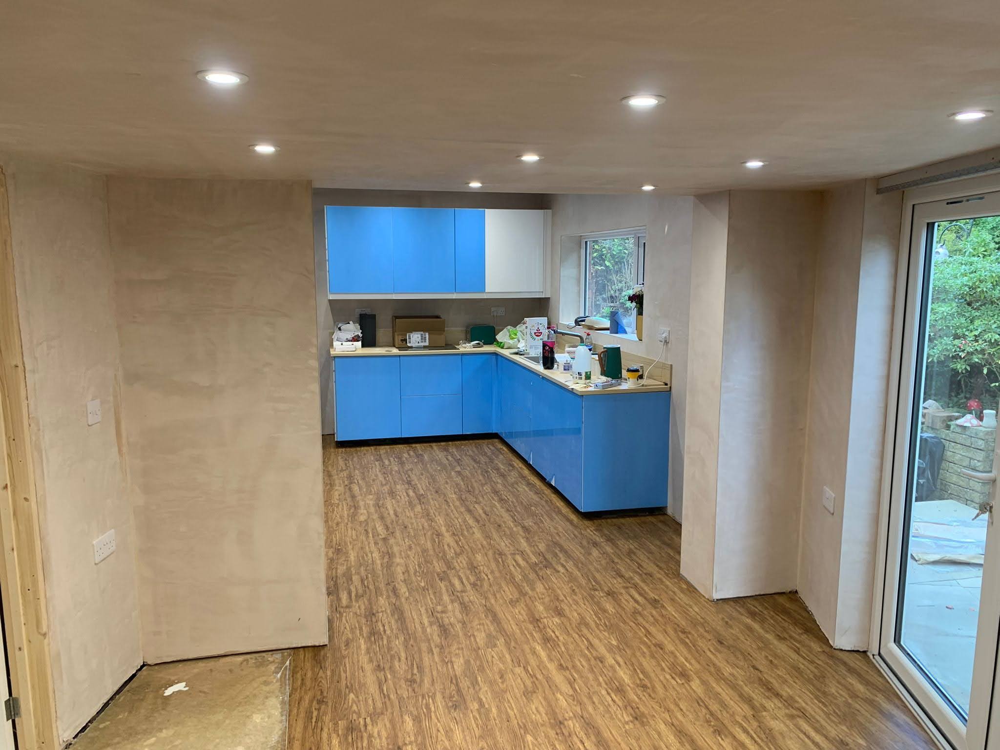 "The whole team were upbeat and excited about the project from the start, and they didn't disappoint. They walked us through the project and identified potential challenges we might face and the solutions they would apply depending on what they found. Made suggestions on lighting choices, bathroom fittings, flooring, paint finish, doors and more importantly they optimised the layout to make sure we could incorporate the bedroom and ensuite in a useful way. There were some very tricky angles on this build because of the position of the existing garage wall in relation to the side of the building, but they achieved it all to a high standard. They also helped with sourcing the kitchen and advised on worktops and appliances. They battled through very high temperatures over the summer, superior plastering skills were needed in such high heat! We are very happy with their work; our house looks great now and is completely wheelchair friendly. They were a pleasure to have around, always collaborating and communicating, they also have an eye for detail and had some inspired recommendations which lifted the end result."